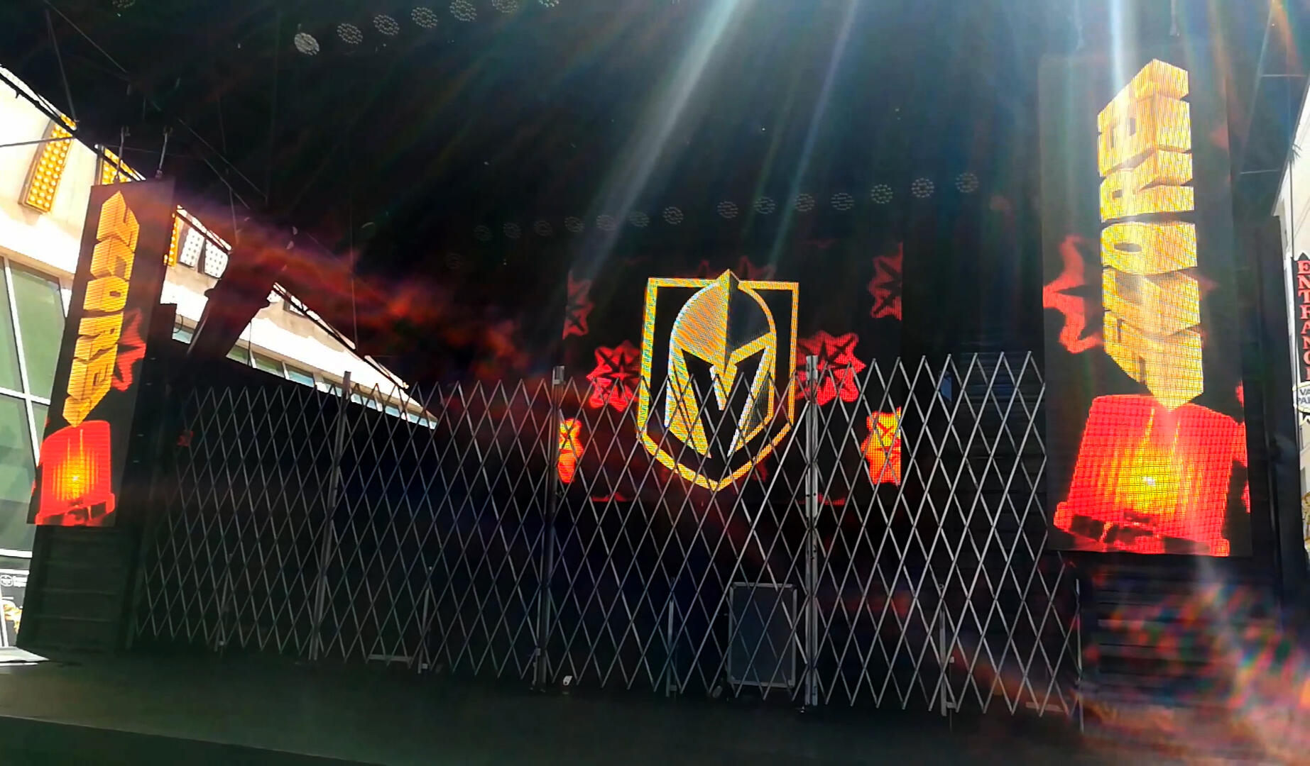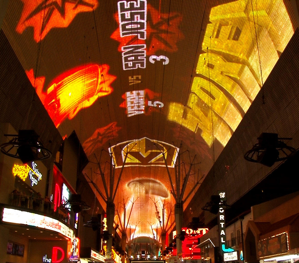 Developed controls linking stage media servers with the canopy system, enabling coordinated visuals across three stages.Used for events like the Golden Knights goal-score spectacular, where operators updated scores in real time and triggered synced visuals street-wide.