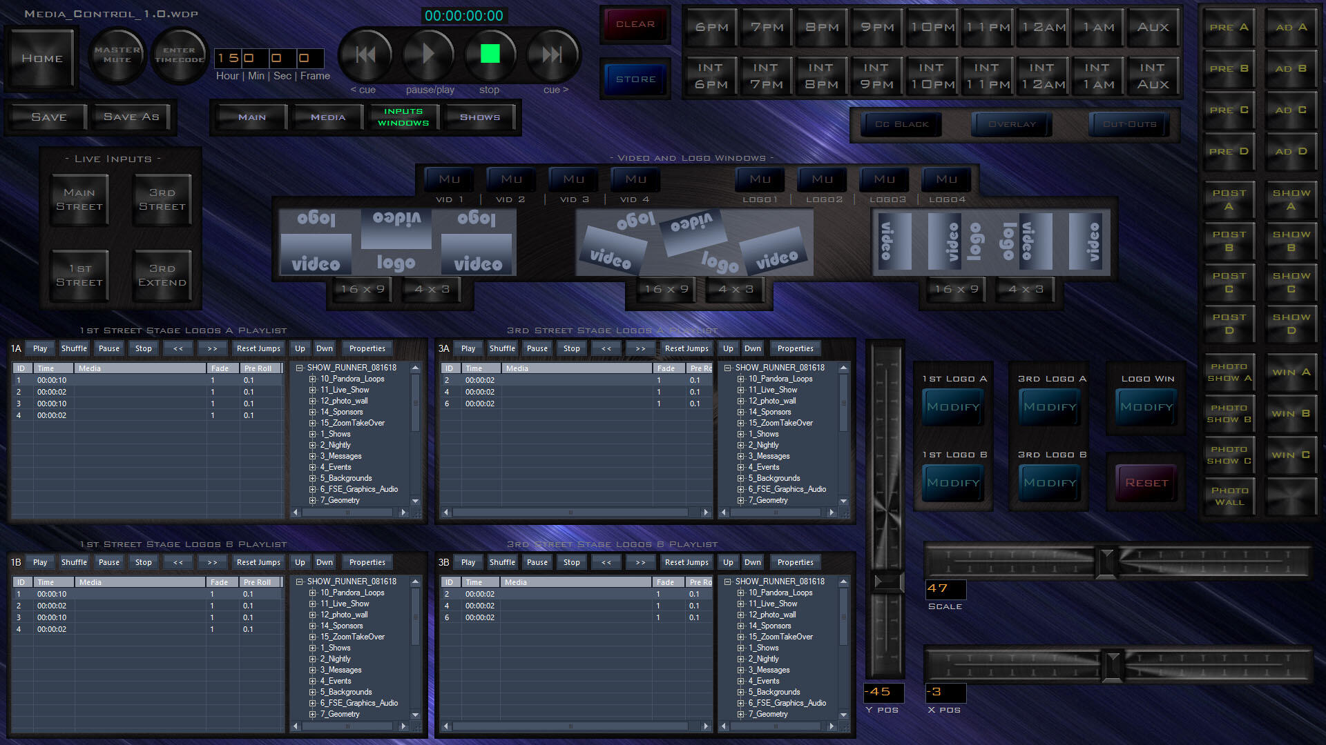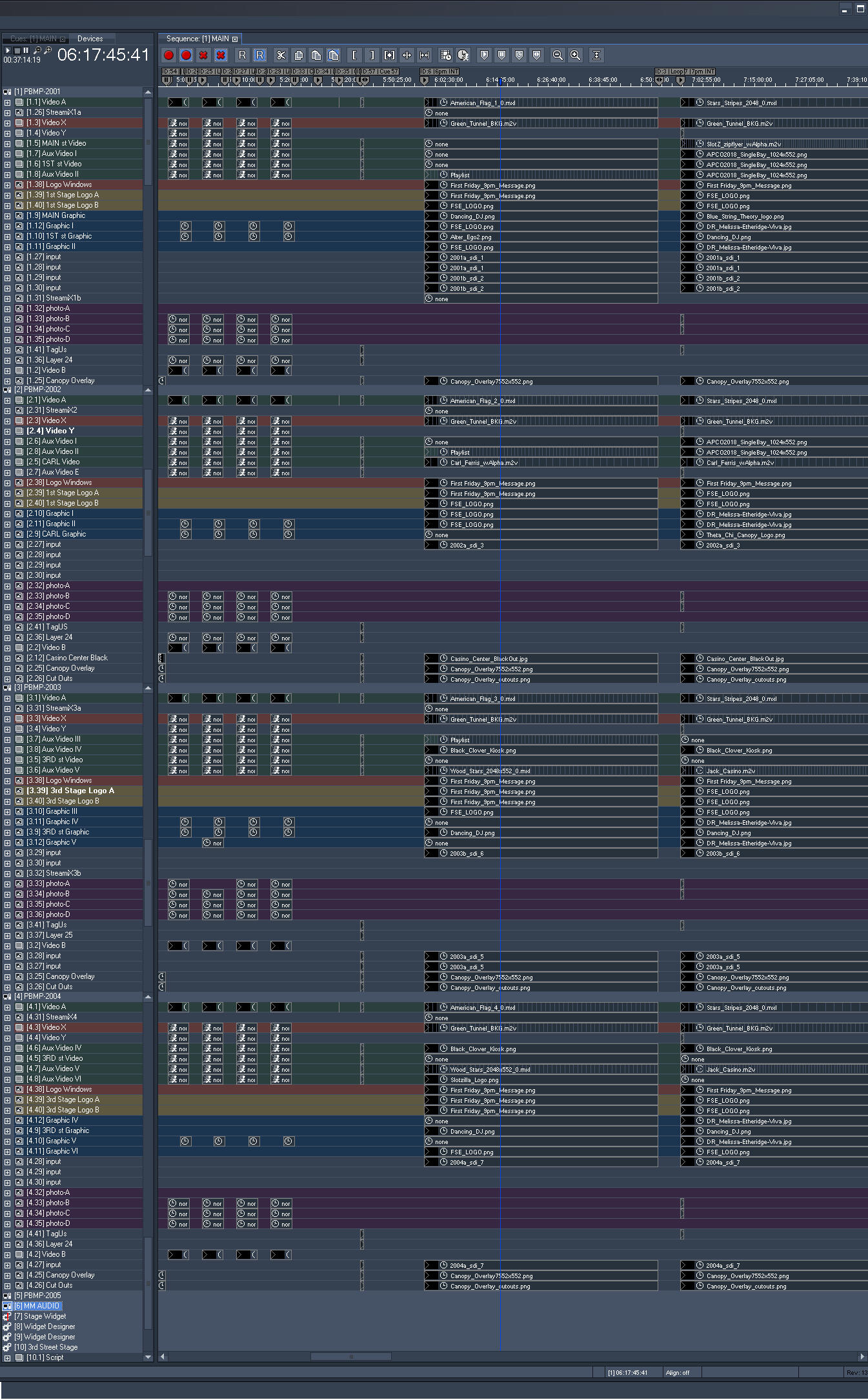 When Fremont Street Experience transitioned to Pandoras Box in 2013, I led the design and programming of a new show control system supporting the Viva Vision canopy and surrounding stages. Drawing on years of experience with the venue’s technical environment, I built a flexible, operator-friendly ecosystem that improved reliability, introduced real-time automation, and expanded what was creatively possible across the 1,500-foot LED display.
